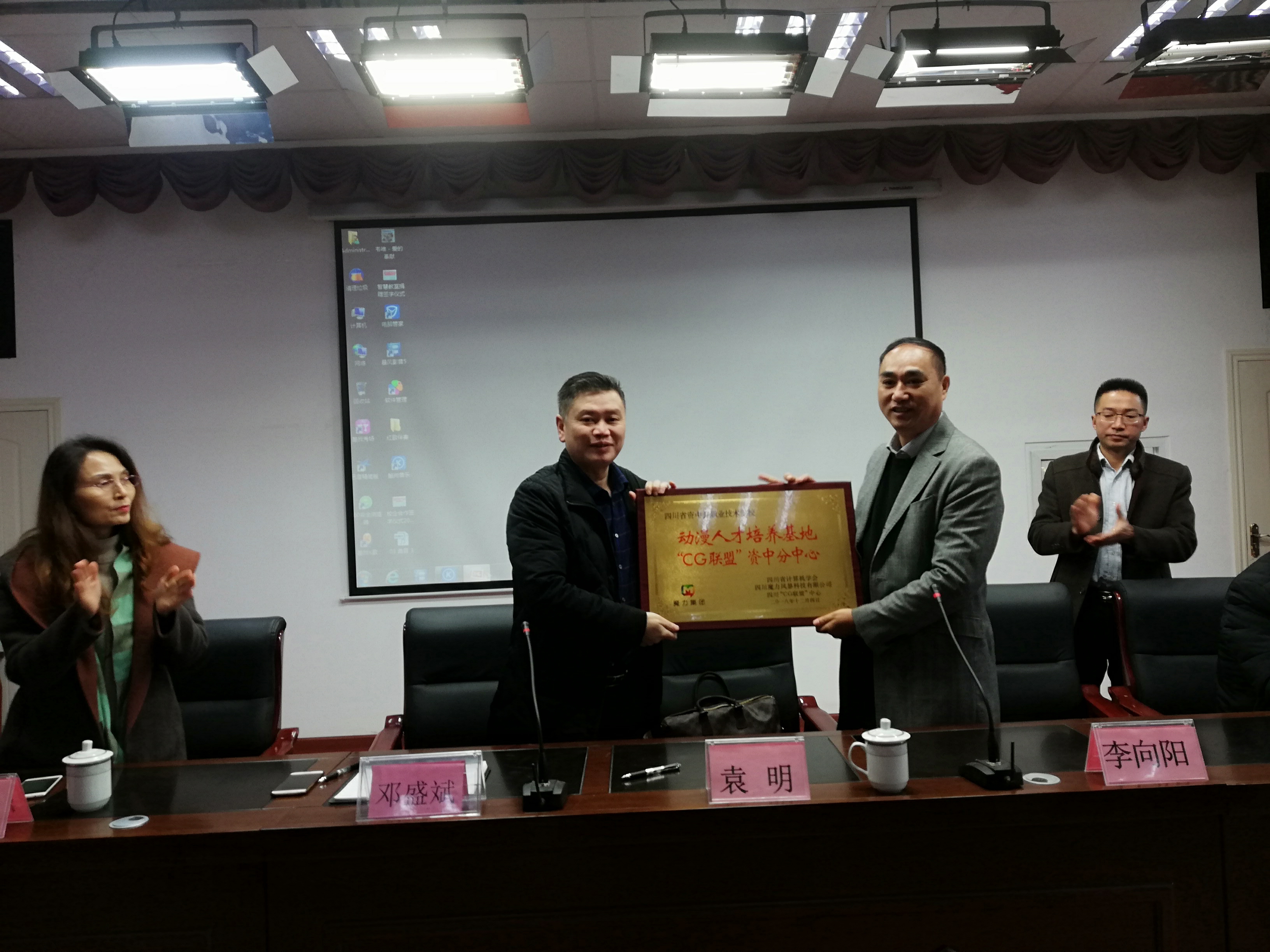 大会在隆重热烈气氛中举行了校企签约仪式。 四川省资中县职业技术学校负责人在双龙校区与四川魔力风暴科技有限公司高层领导经友好协商,决定与学校的计算机应用专业达成校企合作,实行高质量的“师带徒、手把手”的现代学徒制教学模式,共同培养能适应社会需要、素质高、技能强的应用型技能人才。代表双方认真签订了《动漫数字艺术技能型人才现代学徒制培养校企合作协议(三年制)》协议。双方负责人签字后,四川魔力风暴科技有限公司向学校授予“动漫人才培养基地‘CG’联盟资中分中心”牌匾。