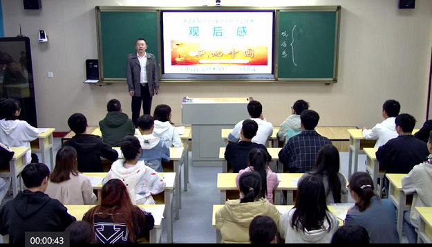 观摩课活动上,傅洪成老师基于新课程标准,由视频《感动中国2019年度人物颁奖盛典》创设情境,由师生互动观后感受导入新课,傅老师向学生展示观后感概念、种类基础知识和写好观后感的步骤等。课堂上傅老师用讲授法、练习法、任务驱动法、讨论法组织教学,用三个学习任务来推动课堂教学,通过观看后感受、观后感的“感点”、联系实际等学习任务一步一步地把课堂推向高潮。