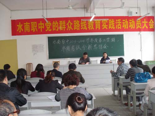 5月5日,水南职中召开了升学班半期考试成绩分析总结会,参会的有全体行政和升学班任课教师。