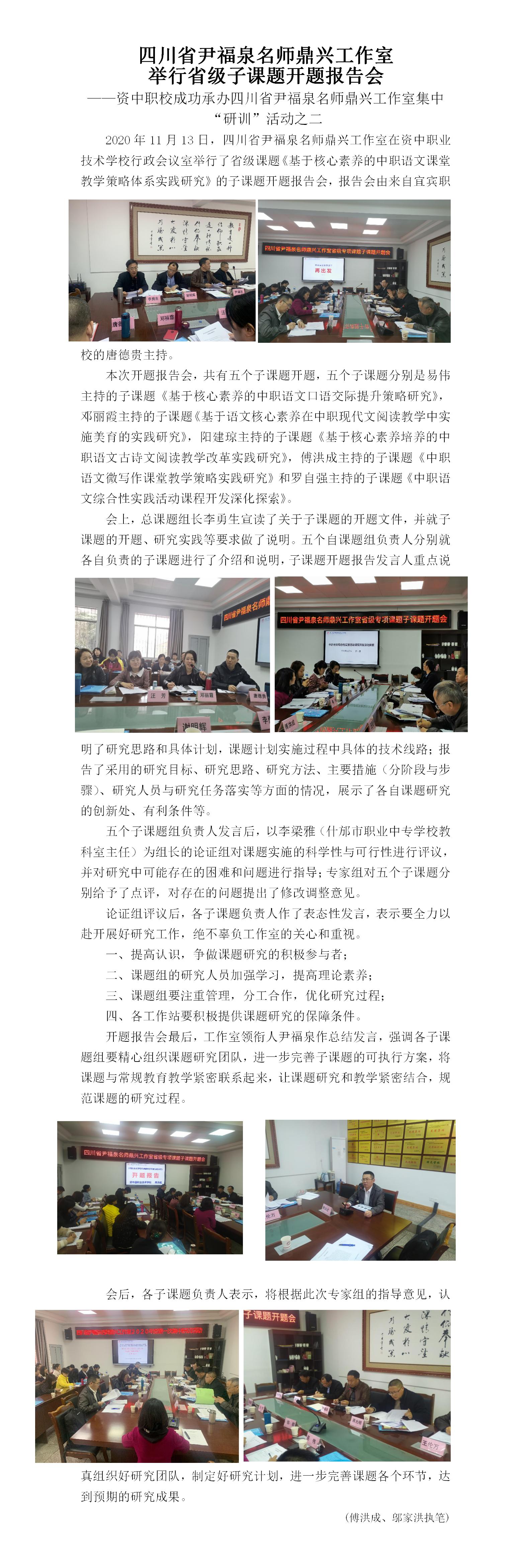 四川省尹福泉名师鼎兴工作室 举行省级子课题开题报告会