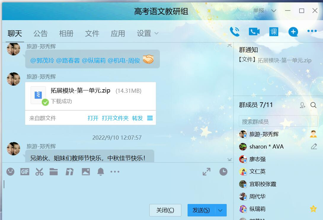 为了助力学校语文教师开启在线“好”课堂,工作室成员郑秀辉老师积极组织线上集体备课,精心安排线上教学内容,优化教学资源。排除一切干扰,助力语文教师做好线上教学准备。9月8日学校全面铺开线上教学以来,工作站语文教师借助QQ群、钉钉、腾讯会议、学习通等平台,通过语音、视频等形式进行师生互动,实现了学生线上学习、线上交流,教师线上批改、线上反馈等工作,充分利用在线课程资源,引导学生在线学习,组织学生讨论、答疑,为学生正常学习提供了保障。