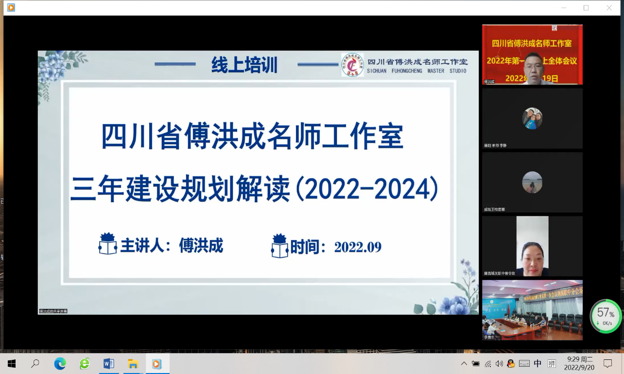 “云天收夏色,木叶动秋声。”白露时节,丹桂飘香。四川省傅洪成名师工作室于2022年9月19日举行了第一次全体会议,会议以线上方式举行。