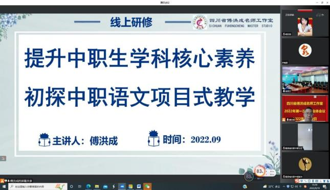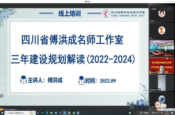 9月19日下午,四川省傅洪成名师工作室召开了2022年第一次线上全体会议,会议由工作室领衔人、资中县职业技术学校正高级讲师、全国优秀教师、四川省特级教师傅洪成主持,张峡工作站5名成员参加会议。