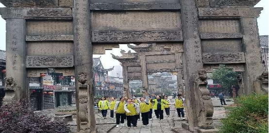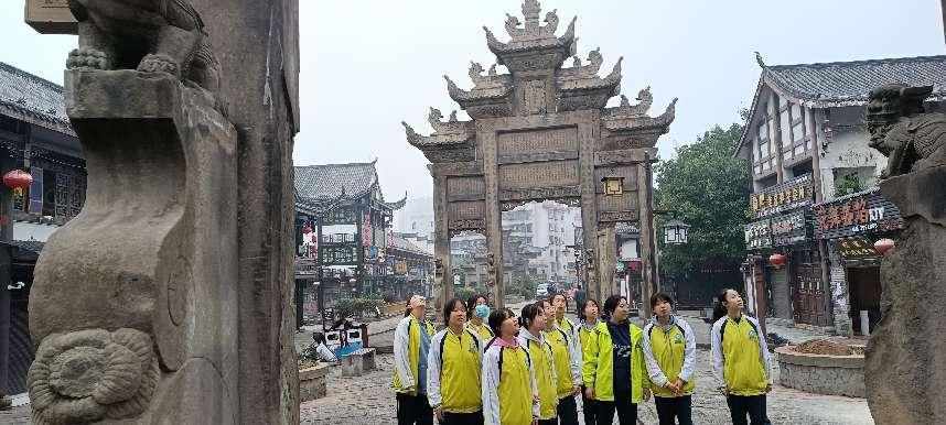 这堂课在四川省隆昌市石牌坊古镇进行。该古镇的隆昌石牌坊群是中国“存坊数量多、相对集中,种类形式多样”的牌坊聚集地,被誉为“中国石牌坊之乡”。牌坊分布在茶马古道隆桥驿(隆昌市古地名)两侧,以明清石牌坊为主。这些石牌坊将年代感、文化感等历史氛围拉满,同学们对课堂充满了期待。