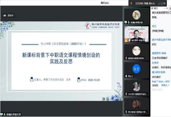 10月29日晚,王伦万工作站组织全体成员参加了四川省傅洪成名师工作室2022年10月网络研修活动——“中职语文新课标学习”网络交流会。
