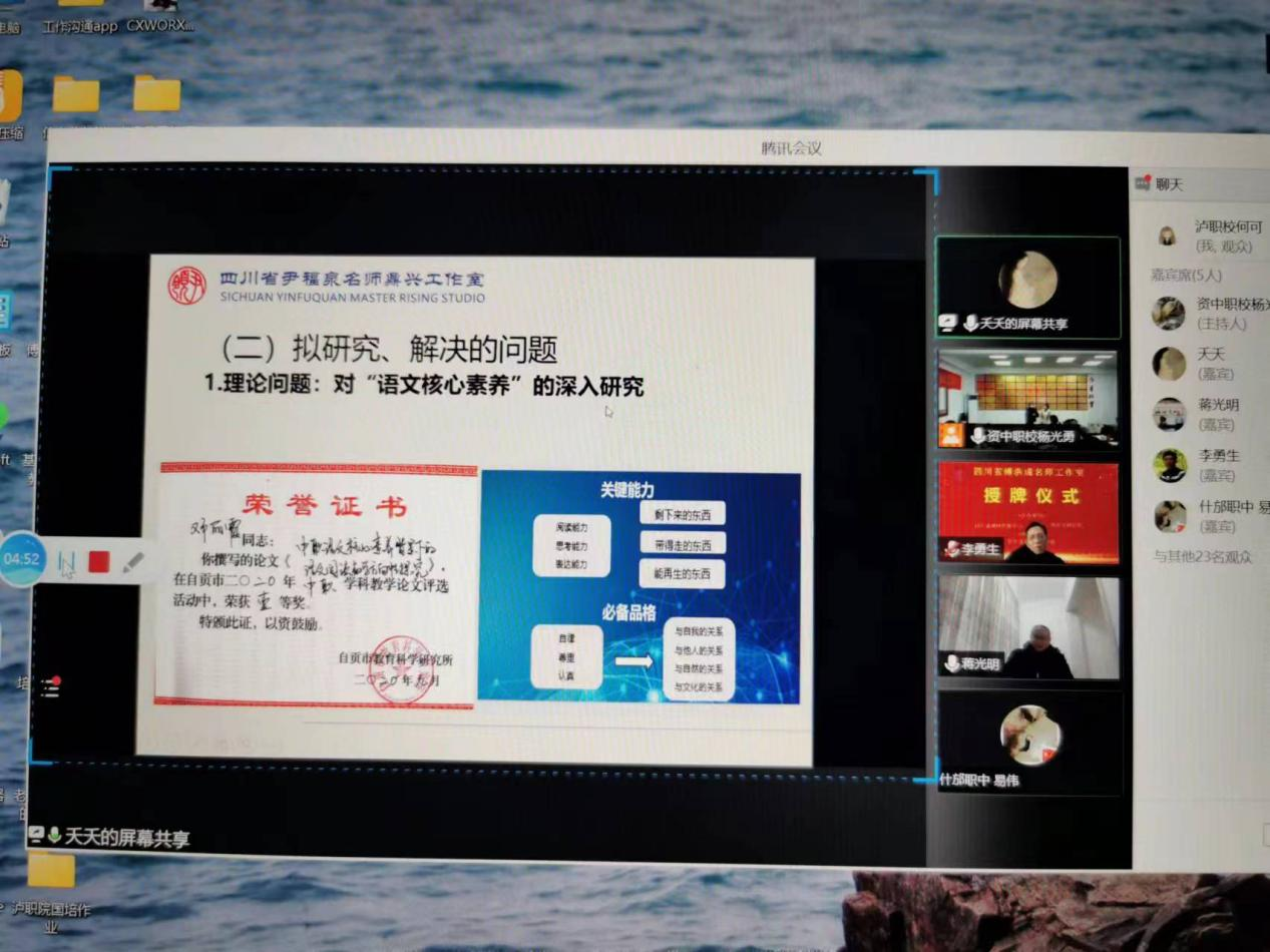 集中研修学习环节中,胡琴琴、何可、张兰、陈亚军等青年成员还分享了教学能力大赛经验。活动由工作室秘书长邬家洪主持。胡琴琴等4名工作室教师参加了“四川省2022年中职教师教学能力比赛”并获奖,在分享中,给我们带来了精美的教学设计和新颖的课堂展示。