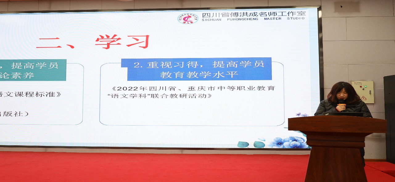 成都铁路卫生学校易娜站长以“头雁领,慧学共研”为主题,从加强组织,健全和完善工作室制度、研修实施情况、工作室年度成果、年度工作反思四个方面进行展示,集中体现了该工作站“专注项目教学,深耕语文课堂”的显著特色。