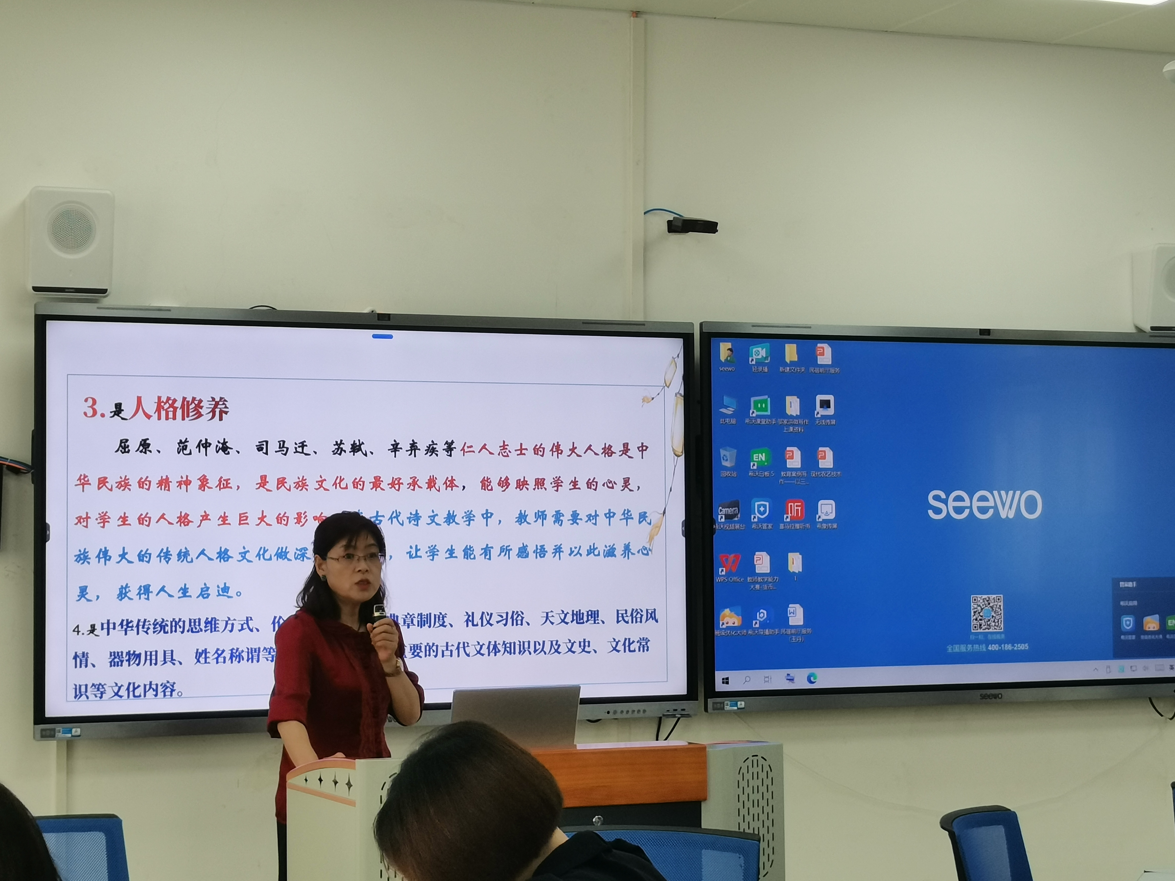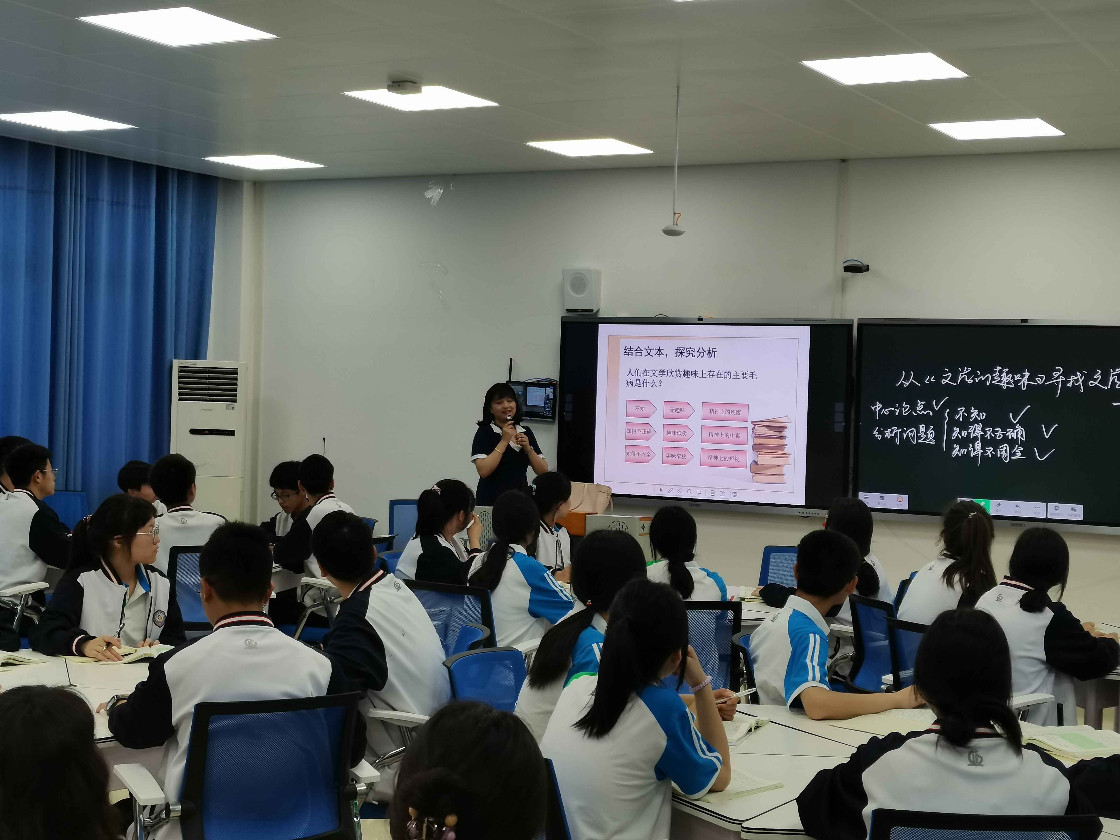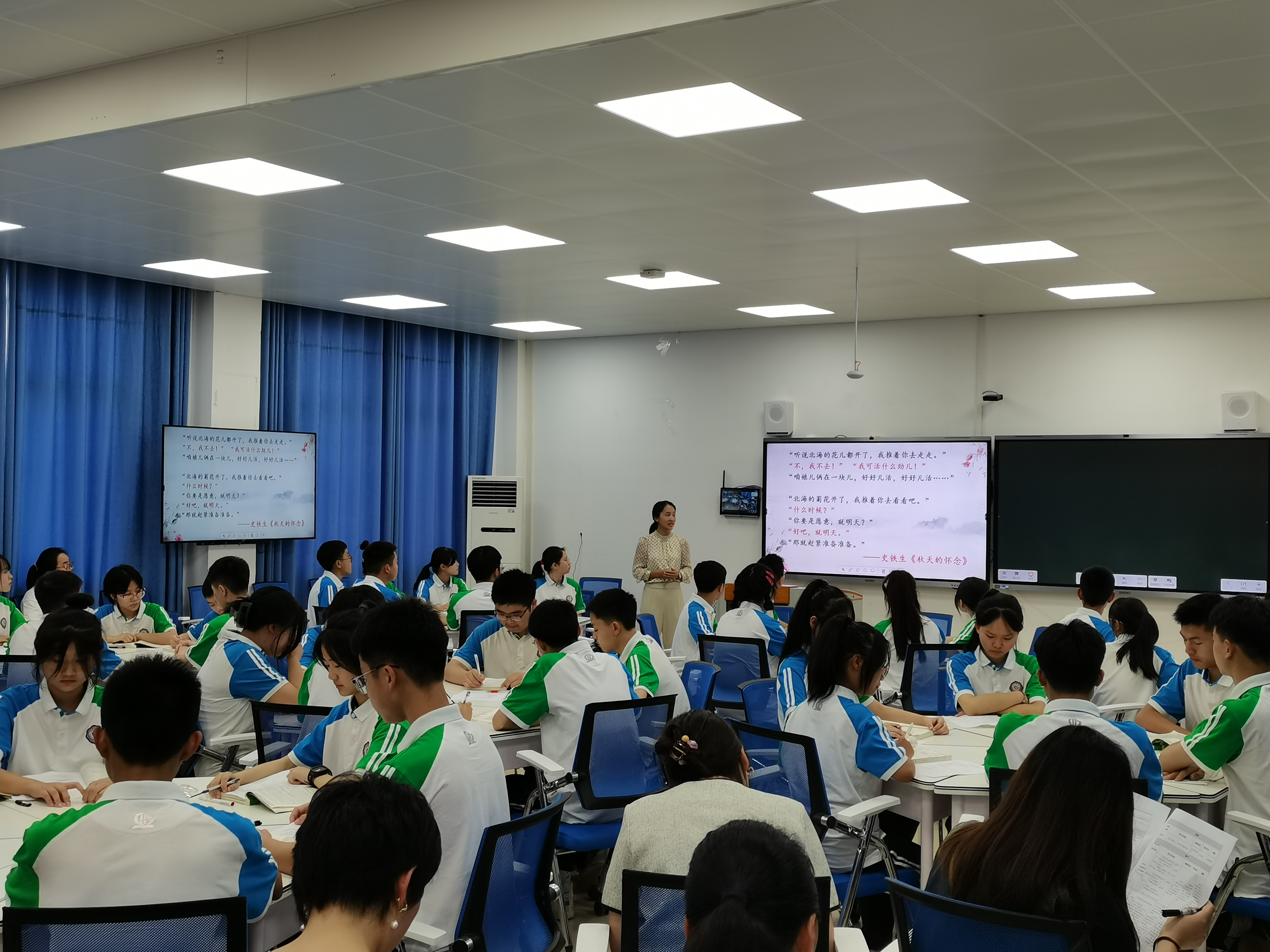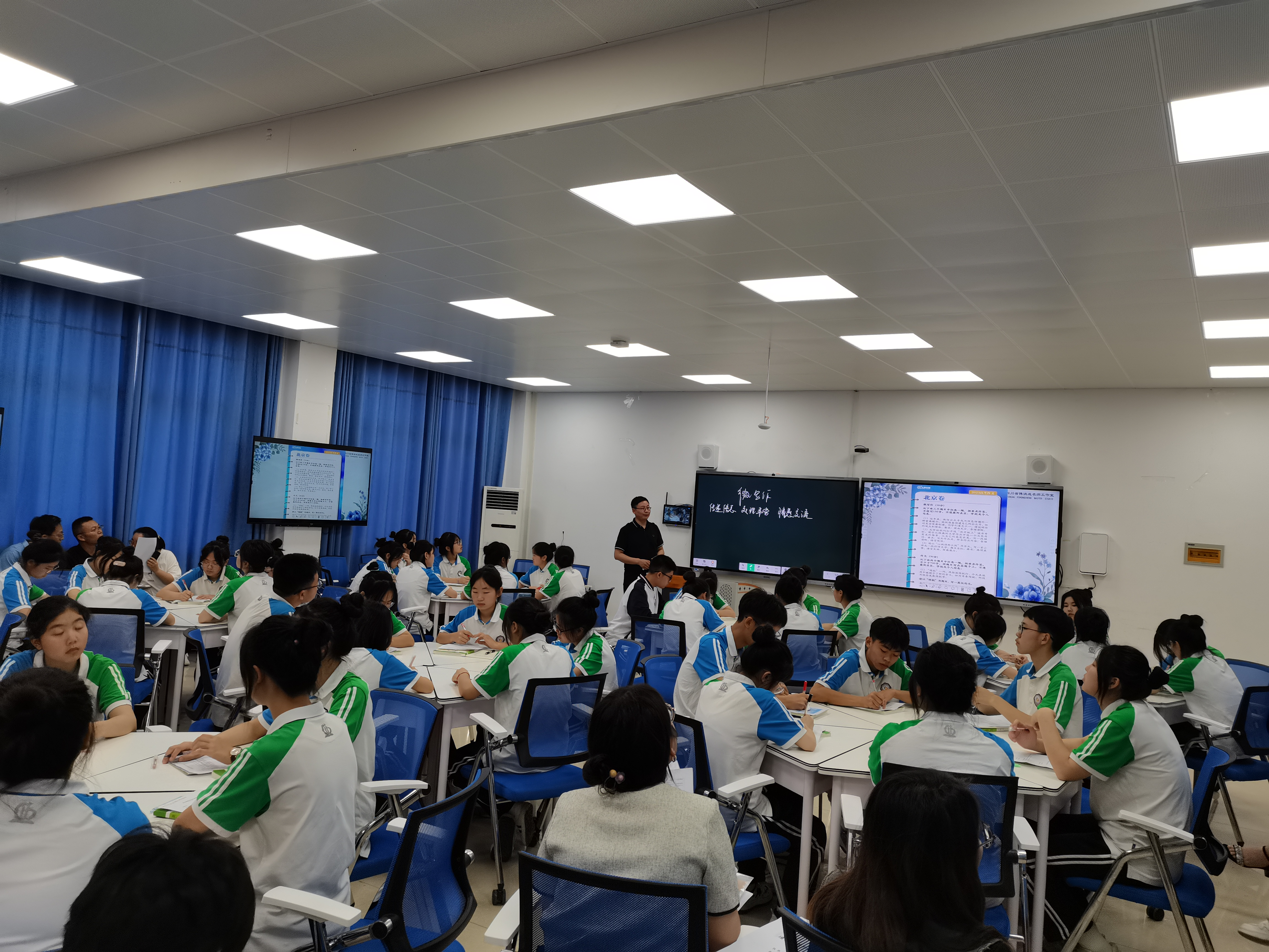 9点,大家移步学校第二录播室,观摩学习由罗永兰、陈沙原、李秋梅、马燕、邬家洪等5位教师带来的示范课。罗永兰老师执教《豪放与婉约,宋词风格对比》,由浅入深,循循善诱,以诗意的语言引领学生进入诗歌的殿堂,感受宋词婉约与豪放的迥异之美。邬家洪老师展示《“观点类”微写作技巧训练》一课,巧妙创设情境,引导学生运用思辨思维分析问题、表达观点,从而掌握微写作的要点。马燕老师通过《探寻<合欢树>中的情》一课,从细节入手,层层深入,引导学生探寻作者与母亲之间感人肺腑、催人泪下的深情。陈沙原老师利用《从<文学的趣味>寻找文学的趣味》一课,用激情点亮课堂,引导学生“扩大眼界,加深知解”,打开文学欣赏的大门。李秋梅老师在《短歌行》一课中,带领大家穿越时空,直面功业未成、求贤若渴的诗人,激励学生成为被时代需要的人才。