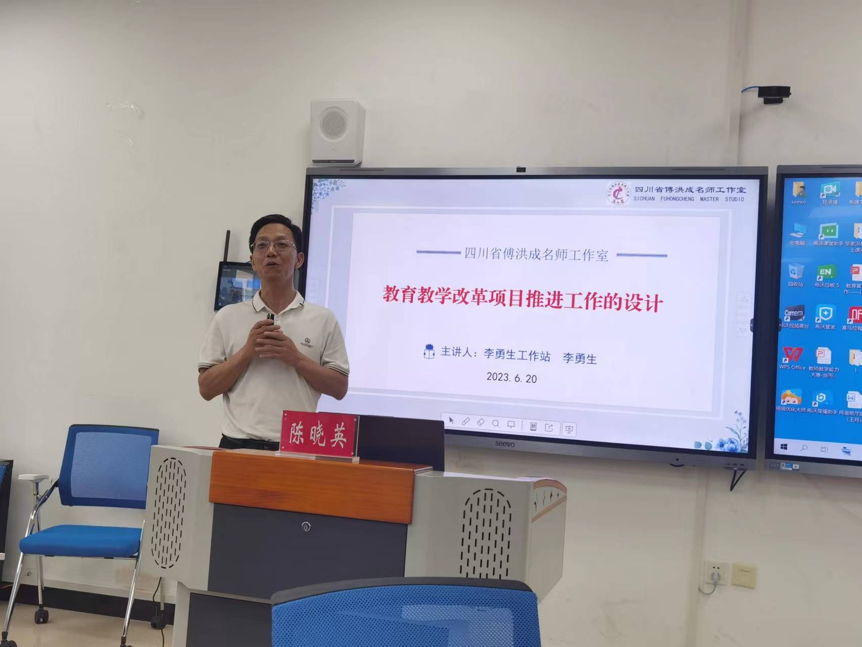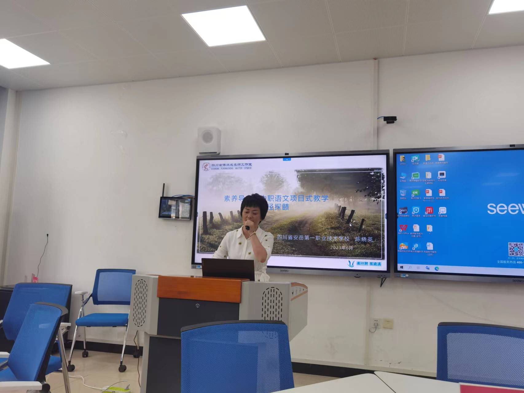 6月20日上午,四川省隆昌市第二中学刘育聪老师作讲座《有温度的家校沟通》,深入探析学校教育与家庭教育的关系,呼吁构建和谐、有效的家校共育机制。广元市利州中等专业学校张译元老师作讲座《统整专题内容,优化教学设计——新课标背景下古代诗文专题的教学思考》,从古代语文教什么、语文教育的重要性、专题视角下的教学设计、古代诗文怎么教等方面,深入探析,并立足教学实例,分享了宝贵的教学经验。四川省安岳第一职业技术学校陈晓英老师作讲座《素养导向下中职语文项目式教学路径探颐》,从中职语文项目式教学的可行性,中职语文项目式教学的着力点、落脚点,中职语文项目式教学探索实践路径等方面,点明了中职语文项目式教学的方向,提供了理论指导。四川省剑阁职业高级中学校李勇生老师作讲座《教育发展改革项目推进工作的设计》,从教育教学改革项目和教育科研课题、“推进工作:项目任务要求”、“成果探索:研究程式简介”、“关注要点:原则到材料”四个方面,对如何进行课题研究工作作了具体、详细的指导。讲座最后,工作室领衔人傅洪成老师作讲座《大力推进项目式教学改革,有效落实中职语文新课标》,通过解读中职语文新课程标准,探究项目式教学与新课标的契合点,为大力推进中职语文项目式改革提供了有力的理论支撑。傅老师专题讲座上,傅老师从“全面落实立德树人根本任务,推进中职语文课程标准实施;专家解读中职语文课程标准,聚焦学科素养彰显育人使命;以标准引领中职语文课改革,推进教学改革提升人才质量;大力推行‘三教’改革,有效落实中职语文课程标准”等4个方面作了分享。整个讲座,傅老师娓娓道来、条分缕析、入情入理,既讲解理论,又大量举例、案例解读,干货满满,让大家收获颇丰。