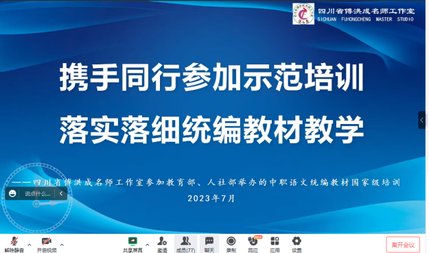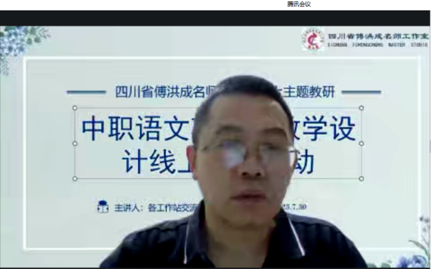 2023年7月30日晚,四川省傅洪成名师工作室举行2023年7月线上研修活动,来自工作室的9个工作站推荐的9名优秀老师作项目式教学案例分享,工作室领衔人傅洪成老师作总结讲话,活动由攀枝花经贸学校明安丽工作站主持。绵阳汪芳工作站的贺利老师作线上交流,其他青年成员参加线上学习。