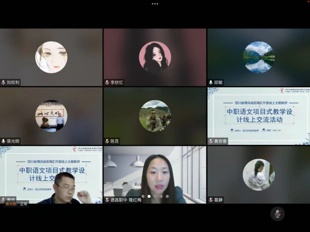 交流活动上,隆红梅、陈昆、叶楠、贺利、杜江红、向晓英、黄安春、肖云等 9 位老师以项目式教学案例为主题,依据中职语文新课标,结合实际开展项目式教学的经验和反思,从专题阅读、比较阅读、学科融合等多方面进行了精彩分享。