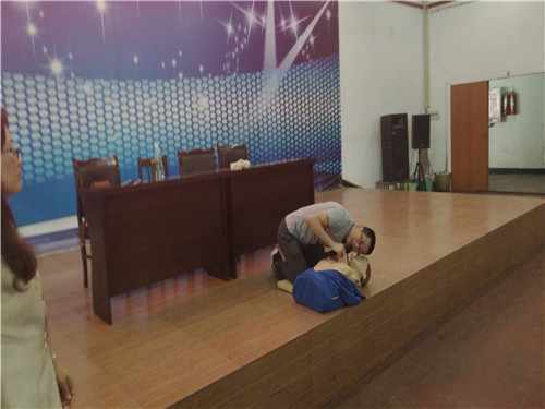 红十字会培训人员围绕红十字会基本知识、救护新概念、心肺复苏术、创伤救护(止血、包扎、骨折固定、搬运等)、意外伤害的相关救护(气道梗塞急救等)展开讲解,并在模具上详细地进行了示范演示。现场还和师生进行了互动教学,大家踊跃参加,通过亲自操作人体模型,进一步巩固了所学知识,掌握了现场急救的基本技能。