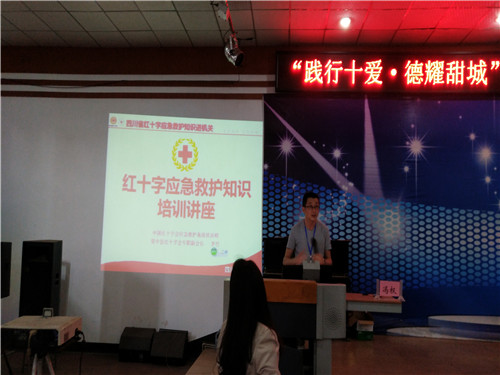 2018年5月10日,经资中教育局主办,资中县红十字会到我校水南校区进行“应急救护与防艾知识普及培训”活动。我校组织了18级春招学生共计300余人参与了本次活动。