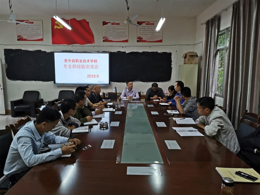 9月19日下午,资中县职业技术学校 “专业部经验交流会”在资中县职业技术学校双龙校区小会议室举行。此次会议由校长兼党委书记邓盛斌同志主持,双龙校区和水南校区各专业部部长参加了会议。