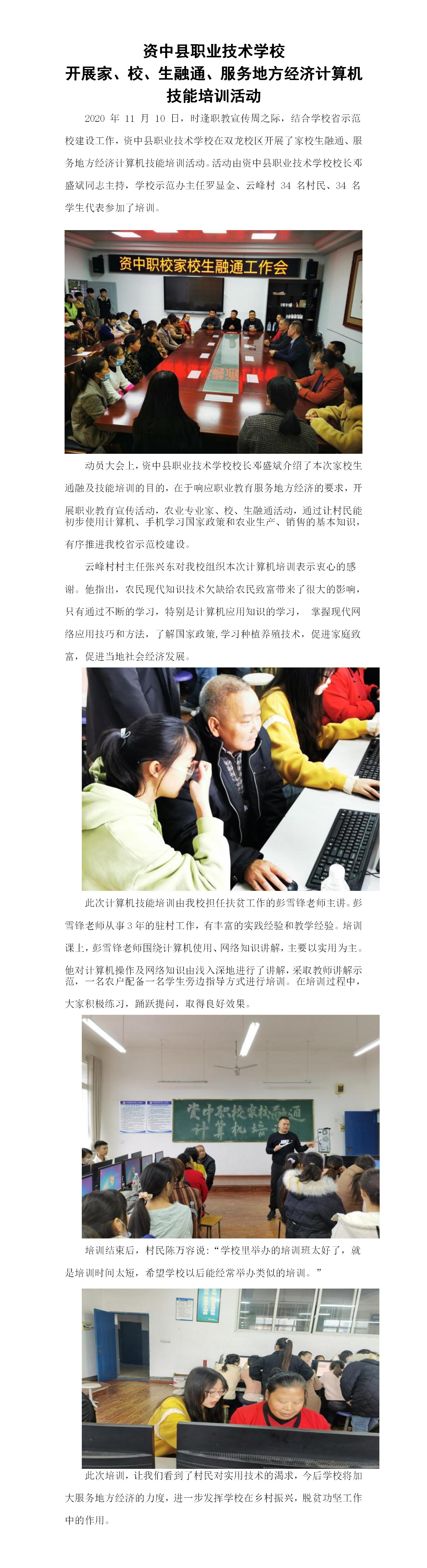 资中县职业技术学校 开展家、校、生融通、服务地方经济计算机技