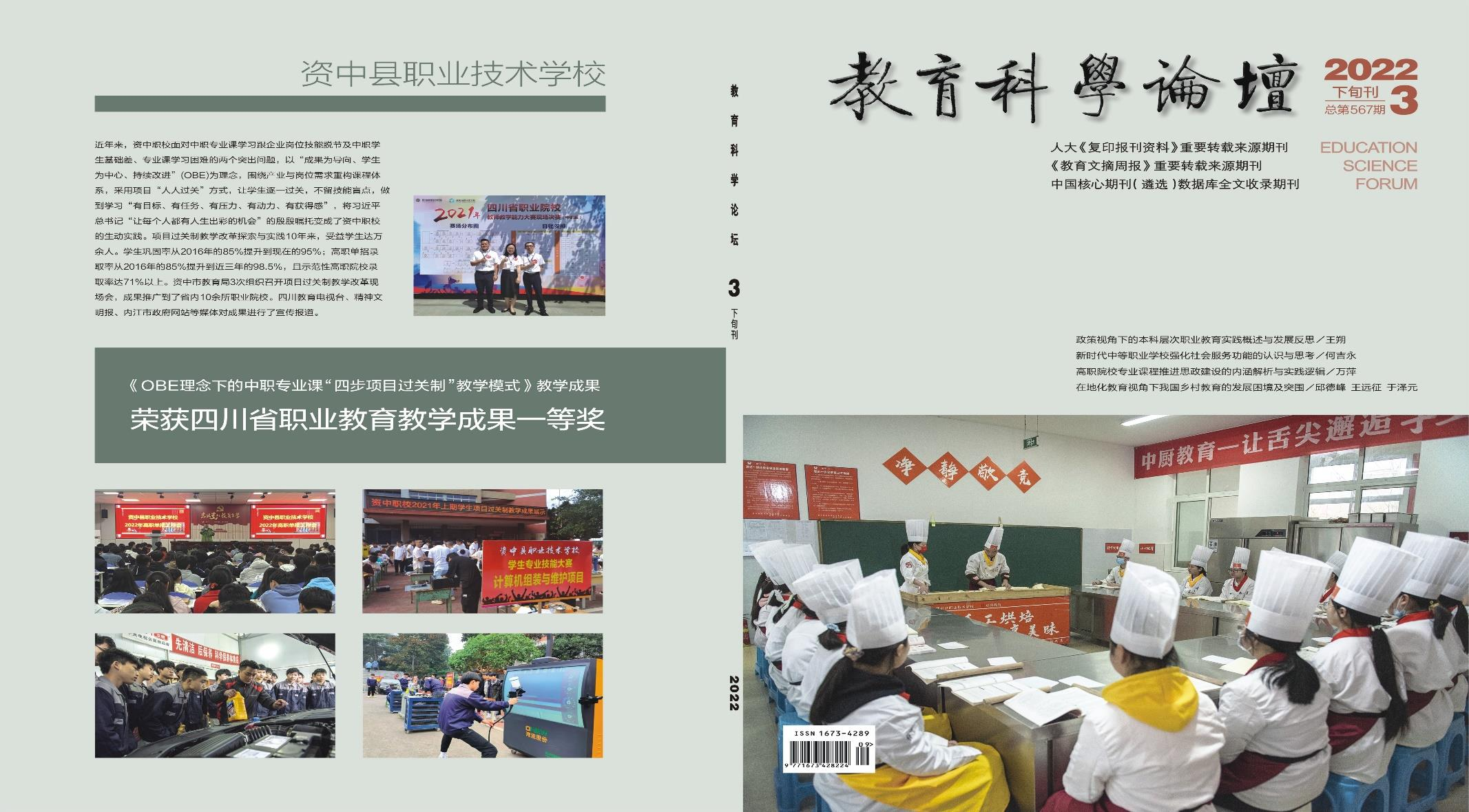 省级刊物《教育科学论坛》2022年下旬刊第3期封面宣传资中职校
